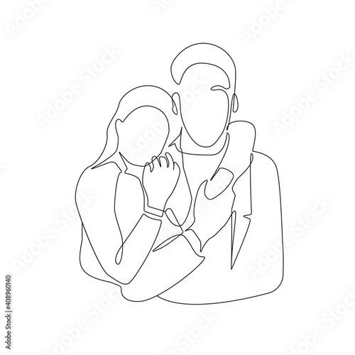 Couple Portrait One Line Drawing Couple Creative Contemporary Abstract Line Drawing Beauty Fashion Peoples Vector Minimalist Design For Wall Art Print Card Poster Wall Mural Natalya Dyachkova